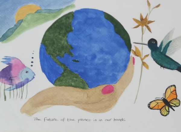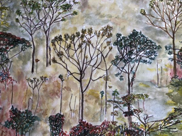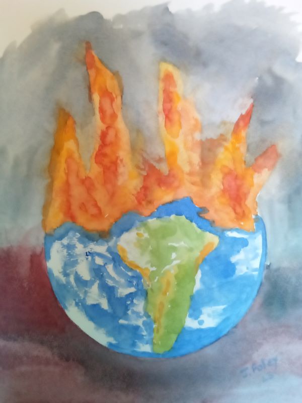 My watercolour depicts the destruction of the Amazon forest as a result of Global warming and other factors.