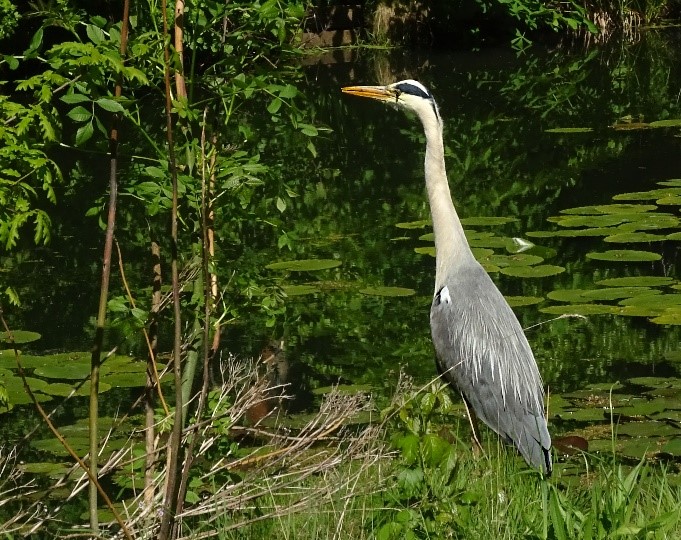 Tony Pelham, Warrington U3A, has seen a few herons along Sankey Valley Canal linear park in Warrington which are usually quite wary of people but since lockdown this one has become much braver and tends to stand its ground. The wood pigeon, on the right, in Tony’s garden regularly loses its balance whilst reaching for the food which is tantalisingly just within reach or not.