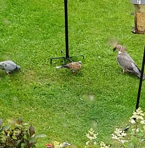 One of the female blackbirds watching Catherine put the food out.