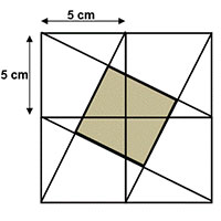 What is the area of the shaded square formed within a 10cm square?